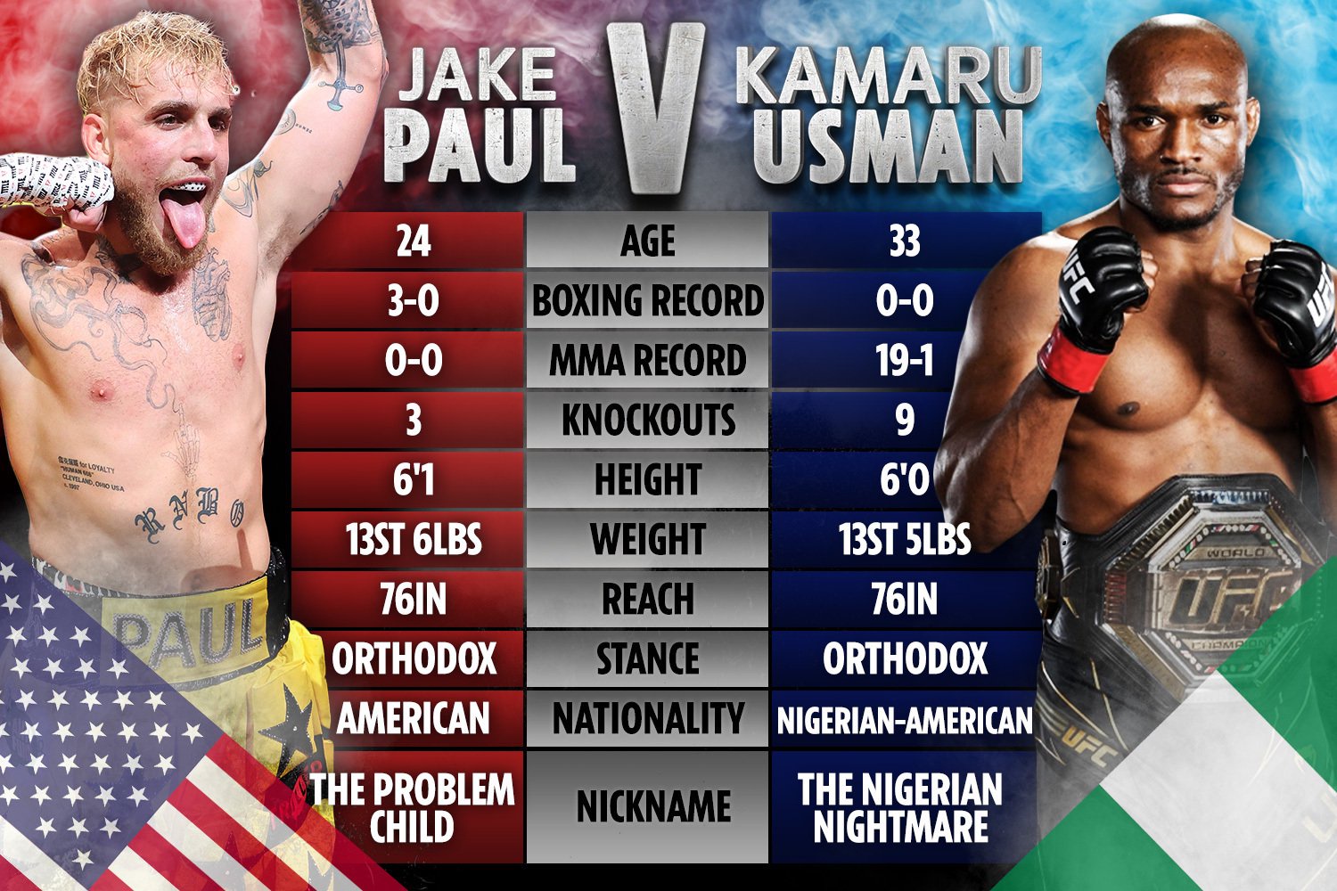 Jake Paul Vs Kamaru Usman Tale Of The Tape How Youtuber And Ufc Star Compare Opera News